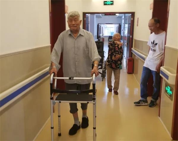 “在入院治疗的第三周,苏爷爷逐渐有了丢掉轮椅站起来后的自信,他主动尝试着靠助行器自己行走。在苏爷爷自行行走时,苏爷爷的老伴则更是抑制不住内心的喜悦。