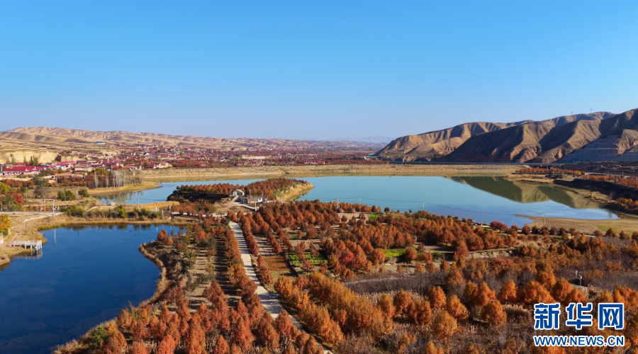 秋意浸染的乡村。湖水倒映着岸边的焦黄。远山近水组成黄土塬上的调色盘。阳光穿透树干播撒暖意。 深秋时节,宁夏海原县关桥乡的百年梨园被秋意浸染,岸边的林木裹着焦糖色的暖意,错落的屋舍嵌在红黄相间的林子里,这方西北乡野的秋,如诗如画。新华网发 田虎摄...