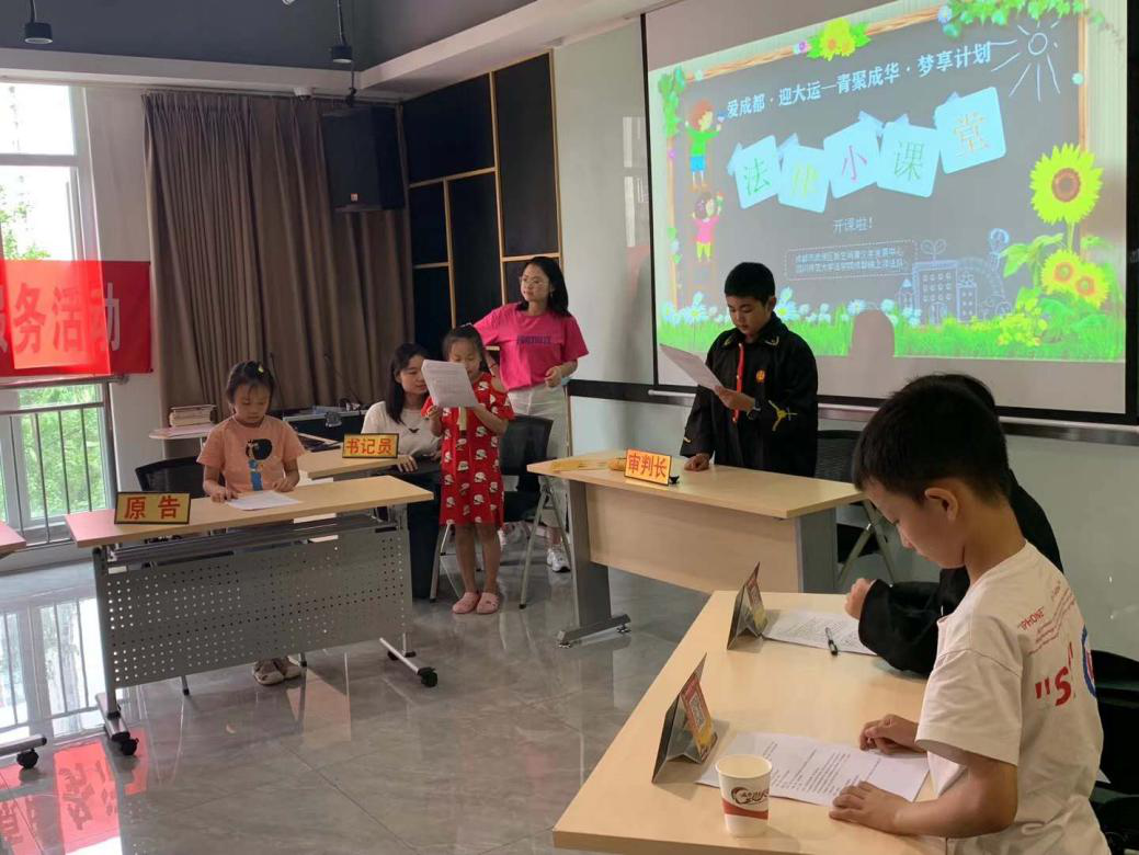 成都新空间青少年发展中心围绕此次专项行动,针对青龙街道、白莲池街道、猛追湾街道、跳蹬河街道的青少年,通过“法治小课堂”和“模拟法庭”两种形式带领青少年学习法律知识,以情景模拟的方式,带领青少年感受法律的庄严与神圣。